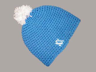 フォルクル 女性ポンポン帽子 ブルーxホワイト フリーサイズ(L) 素材:アクリル100%